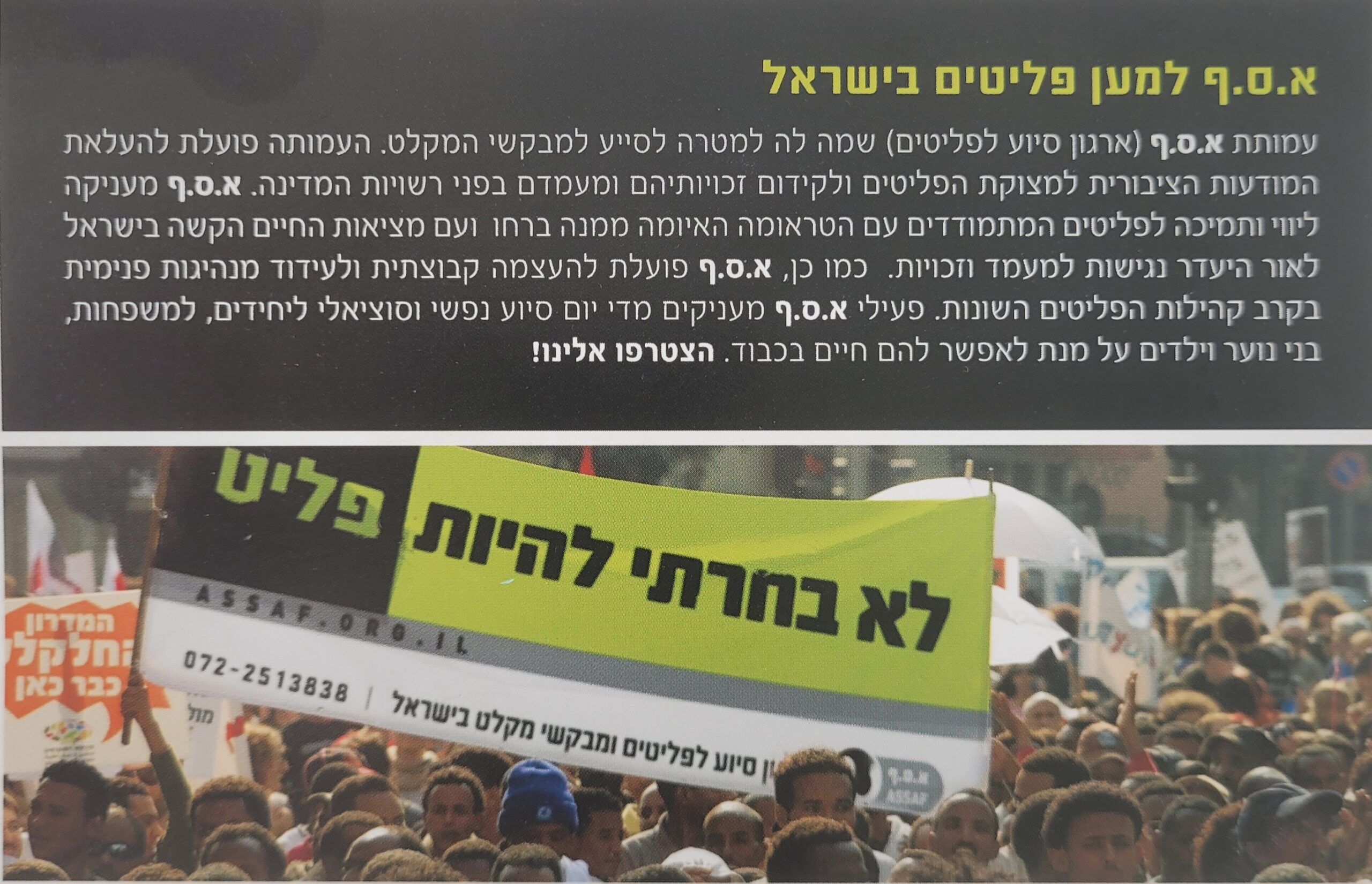 א.ס.ף – ארגון סיוע לפליטים ולמבקשי מקלט בישראל.